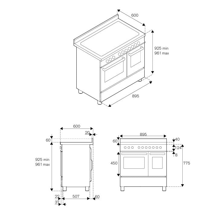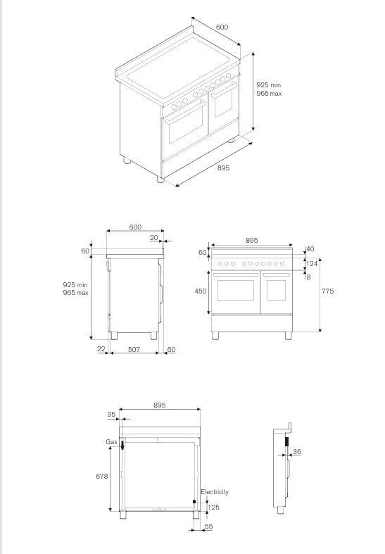 Dit dubbele fornuis biedt veelzijdigheid en voegt stijl toe aan uw keuken. De grote elektrische oven heeft 11 functies, van convectie, bakken en grillen tot hetelucht verwarmen. De grote oven is voorzien van een analoge thermometer. De handige tweede oven, heeft zes functies waaronder draaispit. Beiden hebben een deur met drievoudige beglazing om warmteverlies te voorkomen. De deuren zijn voorzien van soft-closure systeem net als de grote lade onder de ovens.