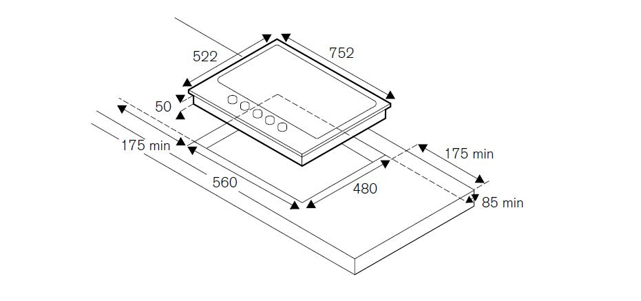 Bertazzoni gaskookplaat, RVS, 60cm, inbouw