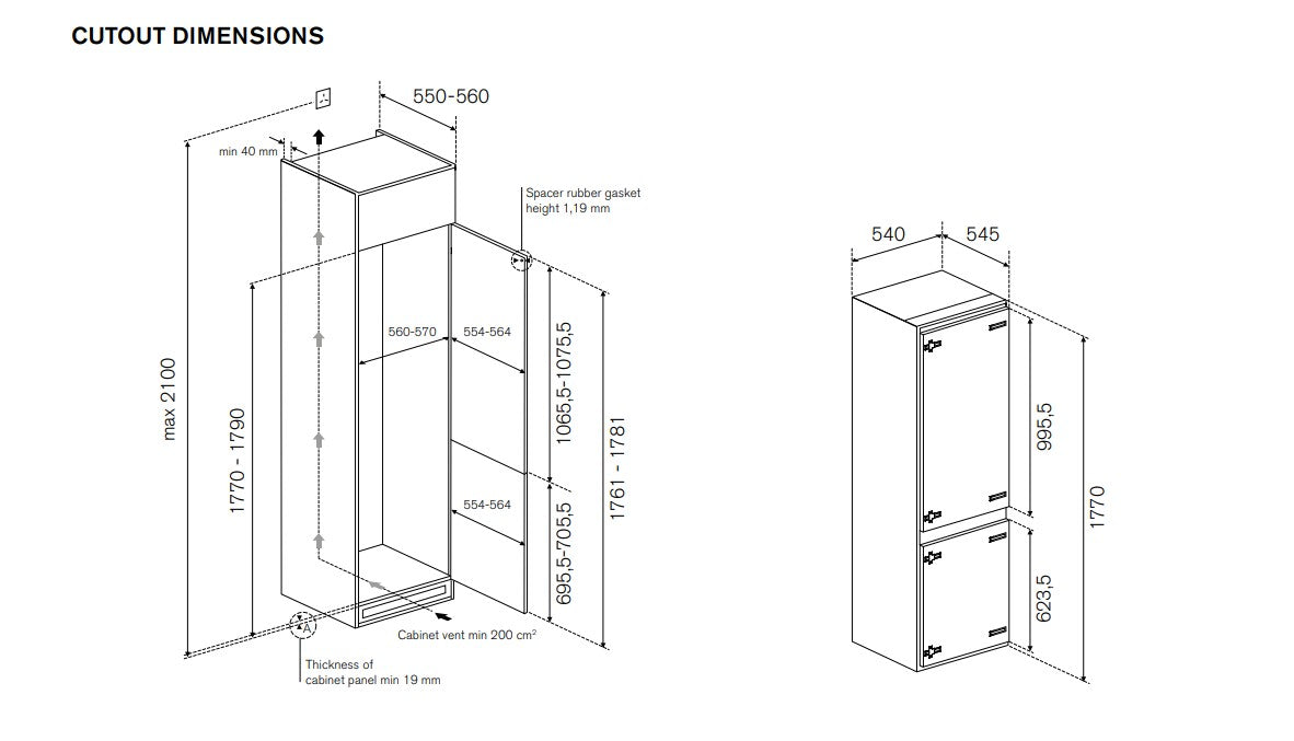 Deze Bertazzoni 60 cm inbouw koelvries combinatie biedt een capaciteit van 242 liter verdeeld over de koelkast en de vriezer met drie vriesladen. De koelkast is voorzien van vier glazen draagplateaus en een flessenrek. Door het No Frost systeem van de vriezer hoef je hem nooit meer te ontdooien. Het tiptoetspaneel is zo geplaatst dat het aanpassen van de temperatuur eenvoudig is. De LED verlichting zorgt voor een helder zicht op het interieur. Deze koelkast is ontworpen om naadloos in uw keuken te passen en wordt geleverd met slider systeem. Energieklasse E.
