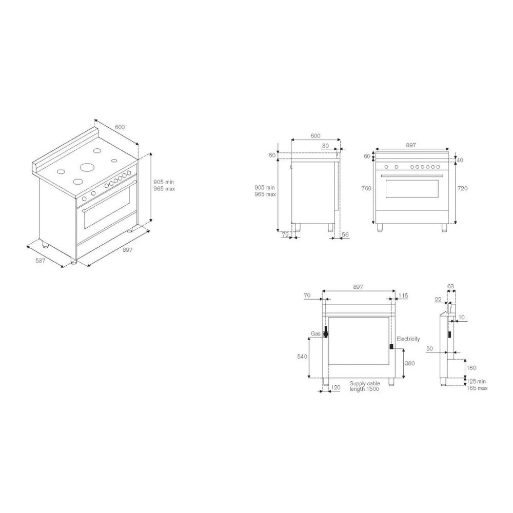 Dit fornuis met enkele oven heeft een roestvrij stalen vangschaal met inductieglasplaat met 5 inductie zones. De elektrische oven heeft energieklasse A, is multifunctioneel en heeft 11 verschillende functies. De oven heeft elektronische programmaklok. De ovendeur heeft drielaags glas met een brede, uitneembare glasplaat.