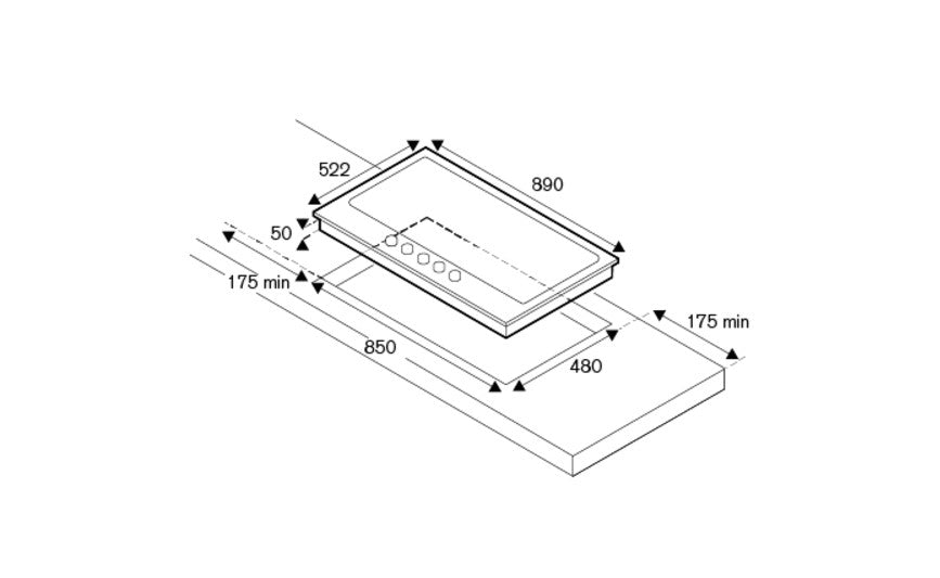 Gaskookplaat 90 cm met krachtige 5 KW wok brander